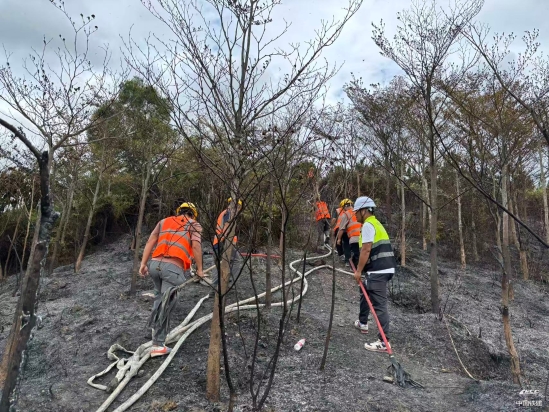 為防范山火復燃,20日,根據相關部署,項目部繼續組織巡查力量,對過火區域開展系統監測。巡查隊伍分上午、下午兩個時段,對火災現場進行細致排查,并使用專業工具對發現的多個復燃煙點進行及時處理。通過持續巡查,有效消除了余火隱患,鞏固了撲救成果,防止了次生災害的發生。