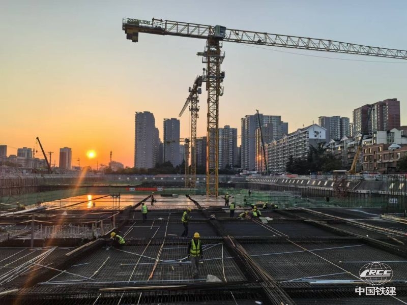 面對工期緊、任務重、環保要求高等一系列嚴峻挑戰,項目貫徹精細化管理要求,開展“大干一百天”勞動競賽等系列活動,制定了詳細的勞動競賽方案,統籌工期、優化班組資源配置,全面提升施工進度,僅三個月完成主體結構49000余立方米混凝土澆筑,創下單日最大澆筑量1200立方米佳績。同時,高峰時期,施工現場科學布置6臺起重吊裝設備同時作業,近600人全天候接續施工,確保了工程優質高效推進,保障了主體結構順利封頂。