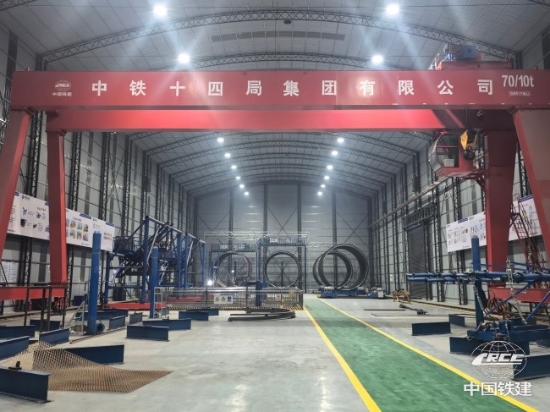 中鐵十四局承擔引水系統土建及金屬結構制作和安裝工程。承建投產的壓力鋼管制作廠,占地25500平方米,采用全新卷板機、坡口機、焊接變位機、數控切割機等設備,并已安裝調試完畢,組圓、摞節、焊接等工裝采用雙工位配置,月均制管能力1000噸,峰值可達1500噸。