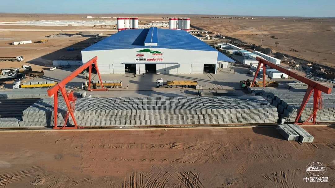 該軌枕廠承擔106萬根重型軌枕、3.2萬余根新型橋枕及91組新型岔枕的預制任務,設計日產能為3000根。自2024年9月底投產以來,項目團隊克服沙漠極端高溫、強風沙等惡劣自然環境,以及跨文化管理等多重挑戰,創造了日最高產能5200根、月最高產能11萬根的紀錄,產品出廠合格率始終保持100%,先后兩次獲得阿爾及利亞國家鐵路局賀信表揚,榮獲中國鐵建“先進集體”榮譽稱號。