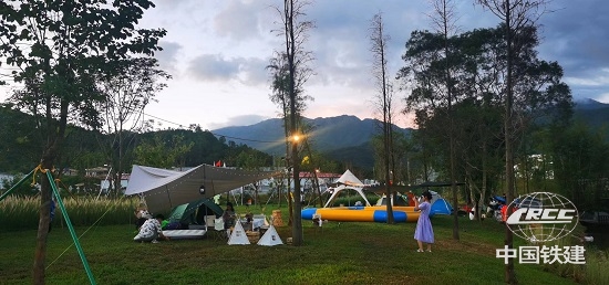 草坪露營,鉆進帳篷歇腳聊天;傳統習俗猜燈謎,感受傳統文化魅力;投壺、釣花燈、泳池激戰,好玩又解壓;夜晚音樂會準時開演,伴著晚風聽著歌,愜意又放松;還有滋滋冒香的燒烤和絢爛綻放的煙花……“金九銀十”期間,很多游客慕名而來,在這里不但可以觀賞表演、參與游戲互動,還可以來到項目施工一線,實地、深入了解項目“好房子”建設全過程的點點滴滴。