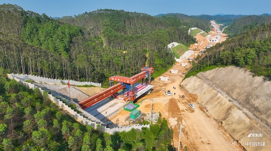 深南高鐵珠三角樞紐機(jī)場至省界段線路全長142.322公里,設(shè)計(jì)時(shí)速350公里,東起珠三角樞紐機(jī)場站,經(jīng)肇慶、佛山、云浮三市,西至粵桂省界,設(shè)云浮站、羅定北站2座車站。中鐵十二局承建管段長8.5公里,主要包含9座橋梁、7座隧道以及409孔箱梁制架等施工任務(wù),此次架設(shè)的箱梁長24.6米,寬12.6米,高3.015米,重541.5噸,采用JQXD900型架橋機(jī)進(jìn)行架設(shè)。