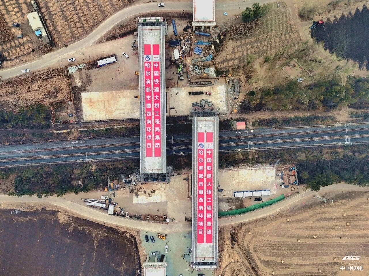 10月29日,由中國鐵建大橋局承建的哈爾濱都市圈西南環段上跨京哈鐵路轉體橋成功完成“雙側雙轉”作業。兩座T構橋梁總重達12000噸,其中左幅轉動87.4度,右幅轉動86.4度。經過70分鐘的正式轉體,兩座T構橋梁同步逆時針旋轉,精準抵達設計位置,至此哈爾濱都市圈西南環段唯一轉體橋成功就位。