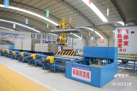 打造包銀高鐵小型混凝土預制構件廠,綜合應用自動布料機、碼垛機器人、碼垛升降機、自動翻轉機、自動噴涂站等新型設備,應用信息化管理平臺,形成智能建造體系,實現了2大類14種型號共計68.5萬件各型號混凝土預制構件全自動精準加工生產,成為包銀高鐵全線唯一的全過程自動化混凝土預制構件廠。