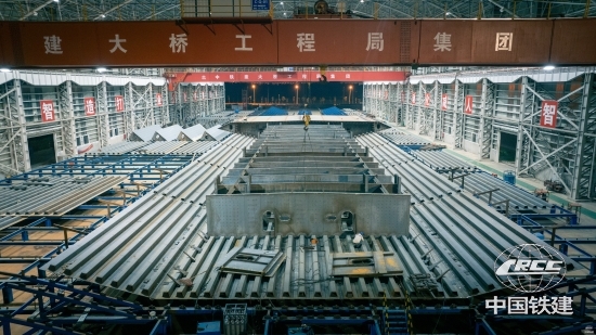 10月22日,時鐘已過子夜,中國鐵建大橋局靖江重工園區里的鋼結構智造車間和室內總車間的燈光依舊明亮,制造設備仍在不停運轉,工人們正在進行青龍門特大橋鋼箱梁的制造。
