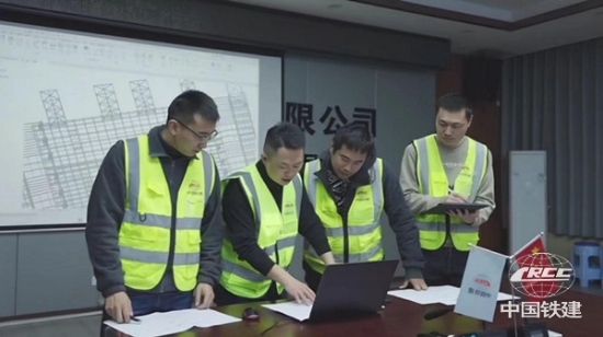 崔現良(左二)與項目團隊研究施工方案(中鐵建設總承包公司 供圖)