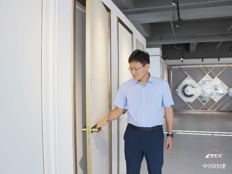 龔曉剛在公司產品研發基地產品庫對比選擇戶內門材質工藝(中鐵地產西南公司 供圖)