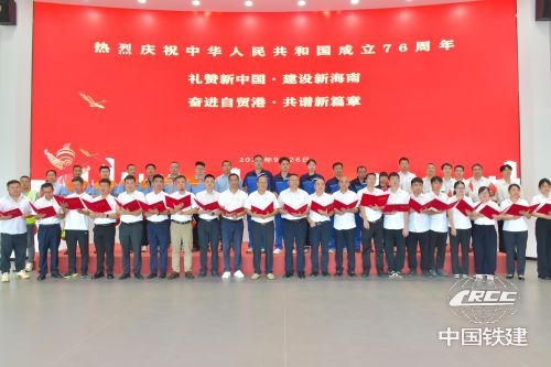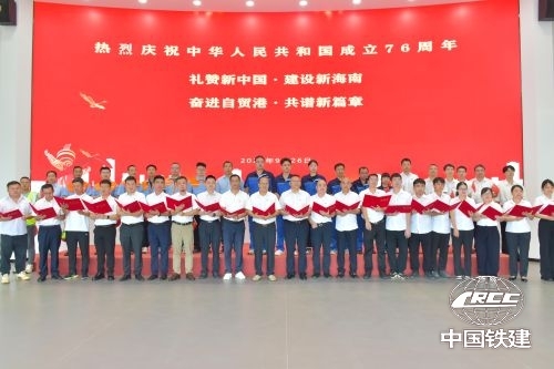 海南金牌港開發區企業聯合舉辦慶祝新中國成立76周年主題黨日活動(中鐵建設建筑發展公司 供圖)