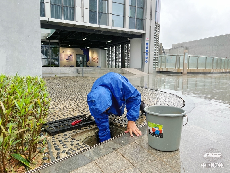 工作人員清理排水口(中鐵地產物業公司 供圖)